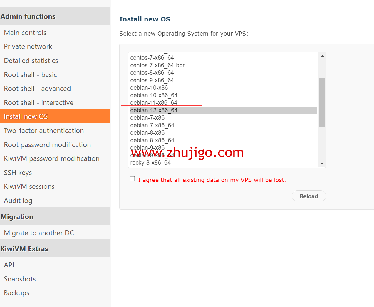 一、搬瓦工 KiwiVM 面板重装系统为 Debian 12